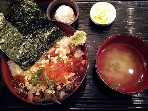 漁丼 500円(税込)渋谷で12時前にランチを出来るタイミングがあれば、絶対に行こうと決めていた漁。ついにそのタイミングがやってきた。オープンは11:30で12時には漁丼がなくなると聞いていたので、11:20到着。まだ誰も並んでいませんでしたが、ものの数分で5…