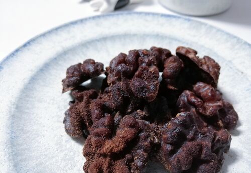 エチオピアのナチュラル精製の珈琲が手に入ったので、嬉しくてクルミもちょっとおめかし。 【ローチョコがけくるみ 材料】 くるみ 40g ココナッツオイル 大さじ1 有機カカオパウダー 大さじ1 作った、と言うほどのことはなく、ホントにちょっとお化粧した、…