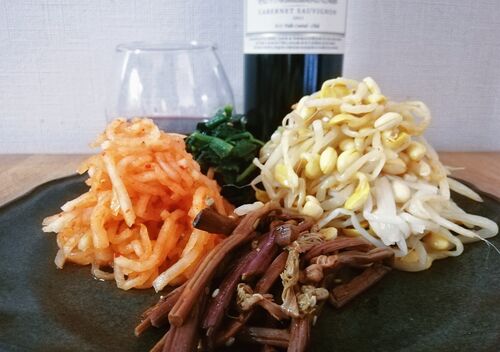 コレステロール多めのお肉や魚介を食べがちなGW。野菜をたくさん食べるおつまみの日も作らないと。 韓美膳ナムルセット 1,080円 → 540円(税込) @横浜高島屋めったにセールにならない韓美膳のナムルが半額だったらしい。これはお得。 もやし ほうれん草 ぜん…