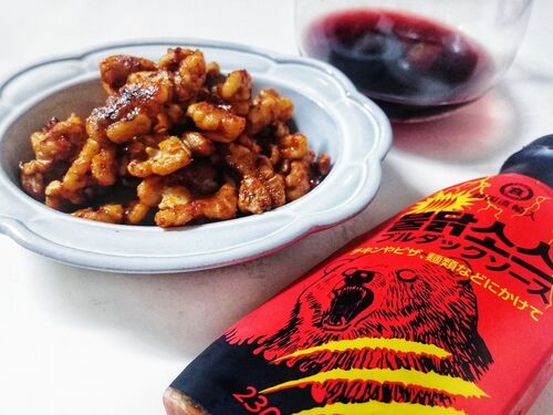 おつまみ胡桃の味付けって甘いものが多いけど、今求めるのは激辛、なんです。 生クルミ100g 麹甘酒 大さじ1 ブルダックソース 適量 唐辛子 適量 だからブルダックソースと合わせてしまいました。 油をひかずにローストした胡桃に麹甘酒をからめて、ブルダッ…