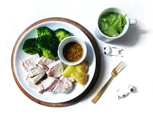 ※本記事はアフィリエイト広告を利用しています。ちょうどあの日のメニューと同じ素材が冷蔵庫にある。こうなったら再現するしかない。ot-icecream.hatenablog.com 低温調理の鶏むね肉 180g 10秒ブロッコリー 120g 蒸し新じゃがいも 40g 本家よりむね肉は20g…