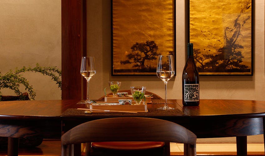 お料理に合わせてワインと日本酒のバイザグラスをオーダーしていたので、何も考えずにお料理にあったお酒を出してもらえる贅沢。このシステムにするともちろんお値段は少しあがるけれど、それぞれのお料理に合ったお酒で、コース料理が倍楽しめます。