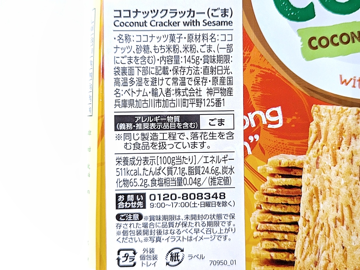 ココナッツクラッカー(ごま) 145g 198円税抜