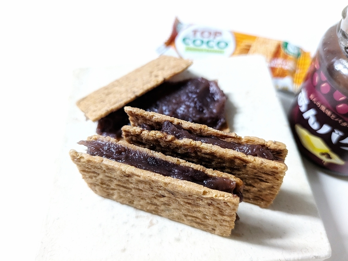 ココナッツクラッカーのあんバターサンド。出来上がり。自分でサンドするタイプのモナカみたいなイメージで。