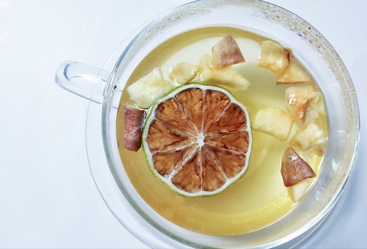 二杯目はこうしてライムとリンゴをいれて抽出。煎茶が全く違うフルーティーなフルーツティーになります。
