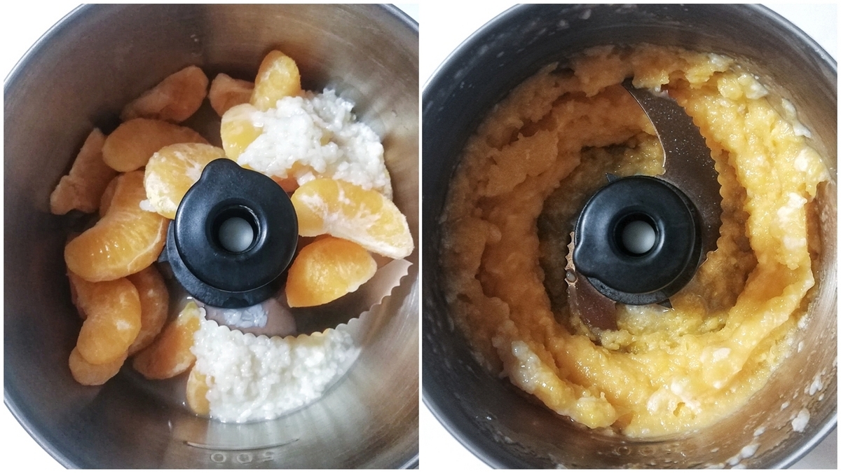 これはもうジェラートにするのがイチバンだな、と言うことで、冷凍みかん150gに自家製甘酒50gを加えて撹拌。