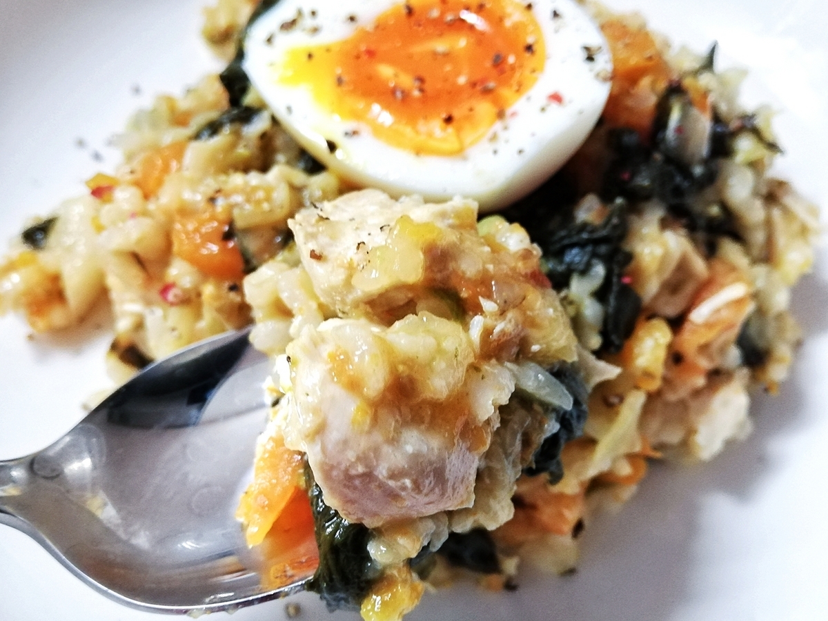 鶏肉はホロホロ。野菜の旨みもたっぷり。もともとはダイエットご飯でしたが、今となっては余り野菜を一気に使いきる"冷蔵庫断捨離飯"として活躍しています。