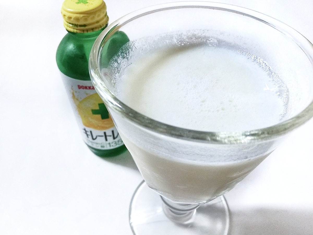 キレートレモンと無調整豆乳を1:1で混ぜるだけ、のドリンクです。