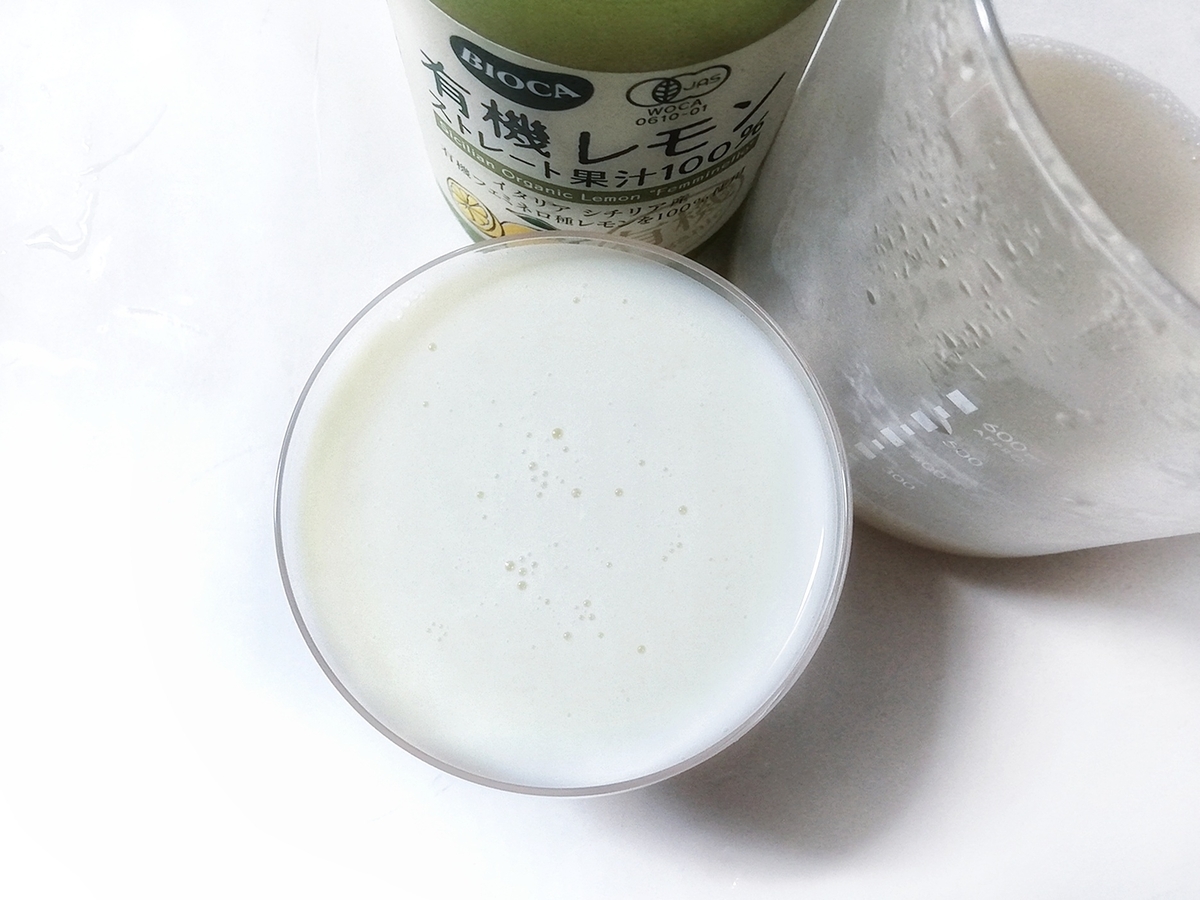 だけどキレートレモンは砂糖や人工甘味料を使用しているので、有機レモン汁と自家製甘酒と豆乳で代用してみた。