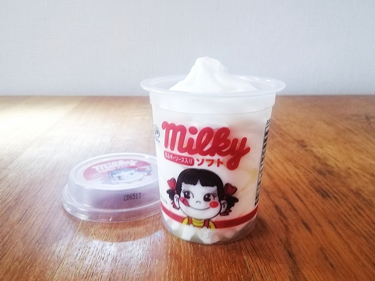 見えるかな。このミルキー味のソースが、ふわっとしたソフトクリームをあのミルキー風味にしてくれる。