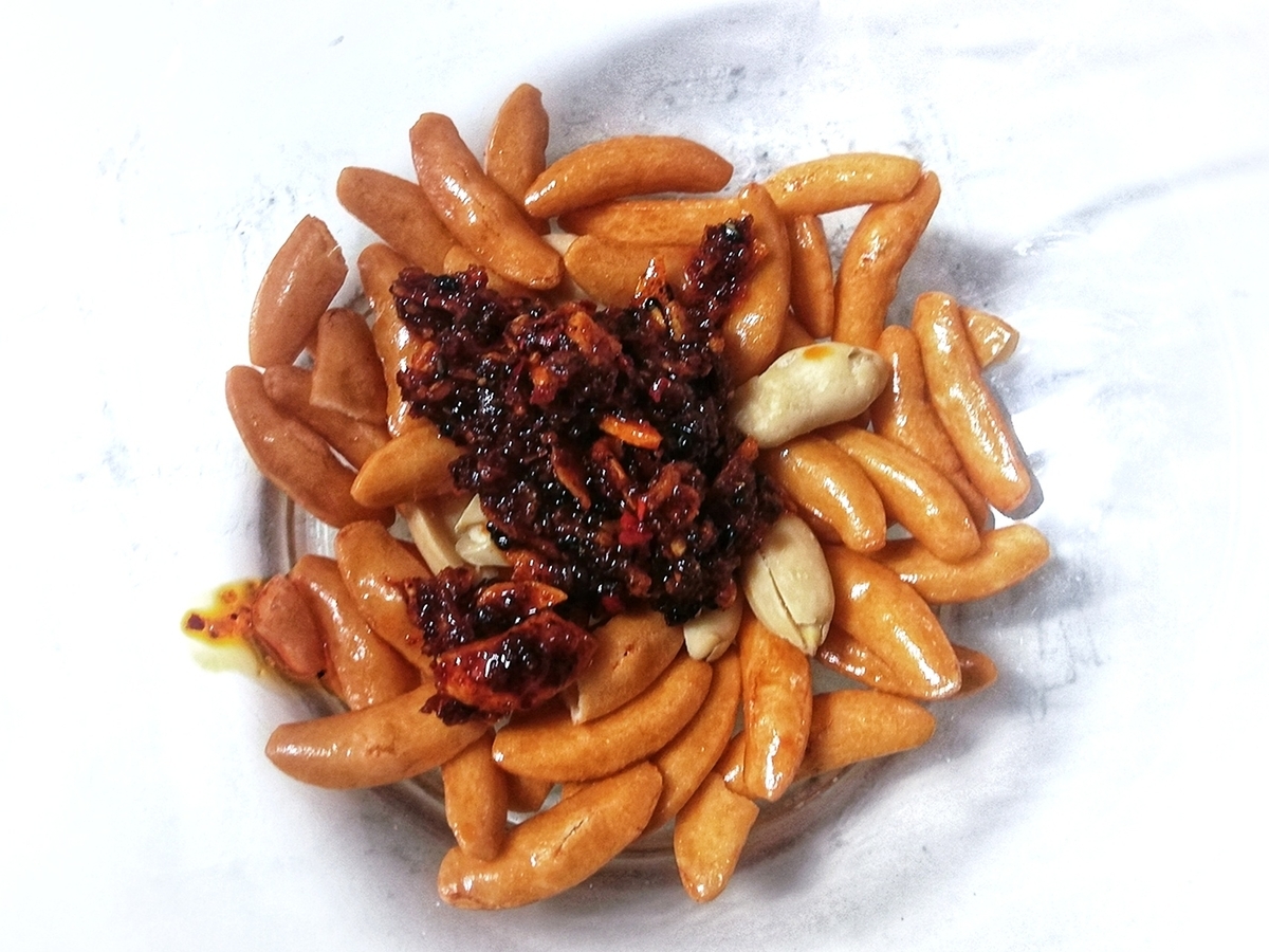 ザクザク系の食べるラー油。辛さも唐辛子だけじゃなくて、青山椒の効いた深みのある味です。