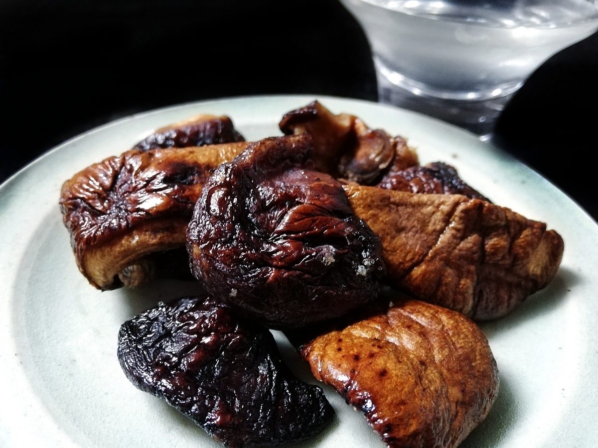 戻した干し椎茸をぎゅっと絞って、適当な大きさにカットしたら500wレンジで3分。水分を飛ばします。適量の塩とオリーブオイルを混ぜて170°トースターで30分。