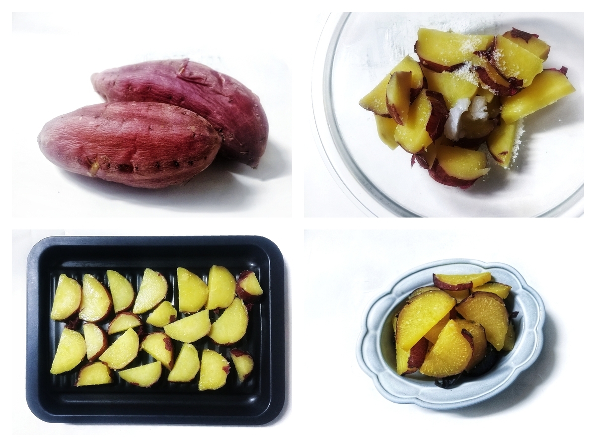 この日のさつまいもはシルクスイート。100分加熱したものをカットして、調味料と合わせたらトースターで10分。